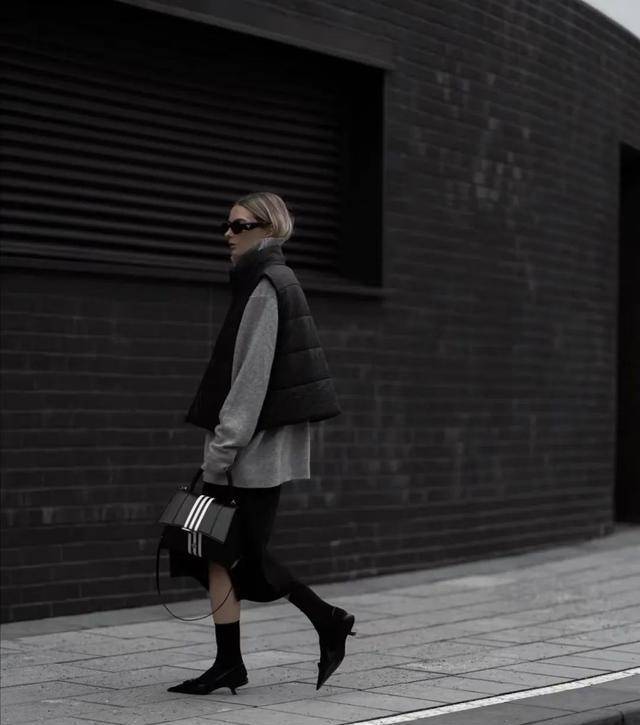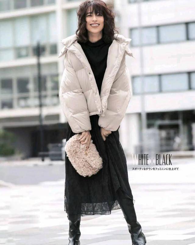羽绒外套在黑色纱裙的衬托下,会变得更优雅,更有时髦气息。整体着装也更轻盈。▼