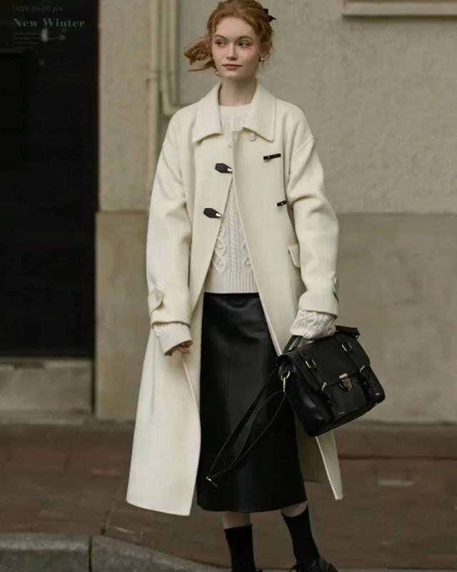 想要显得更利落,可以选黑色的膝下裙,搭配黑色羊毛厚袜子一起穿,更显高,适合小个子女生借鉴。▼