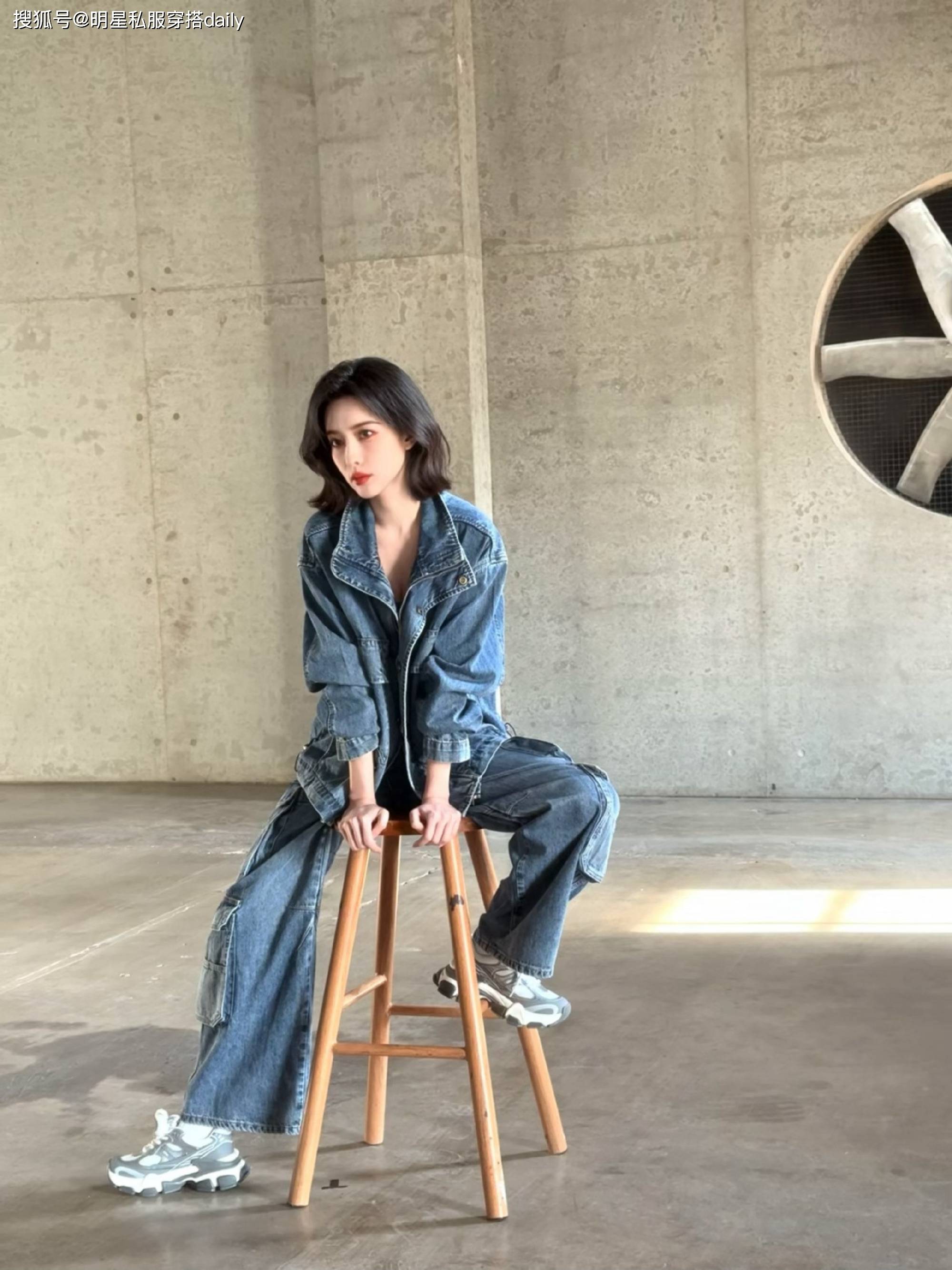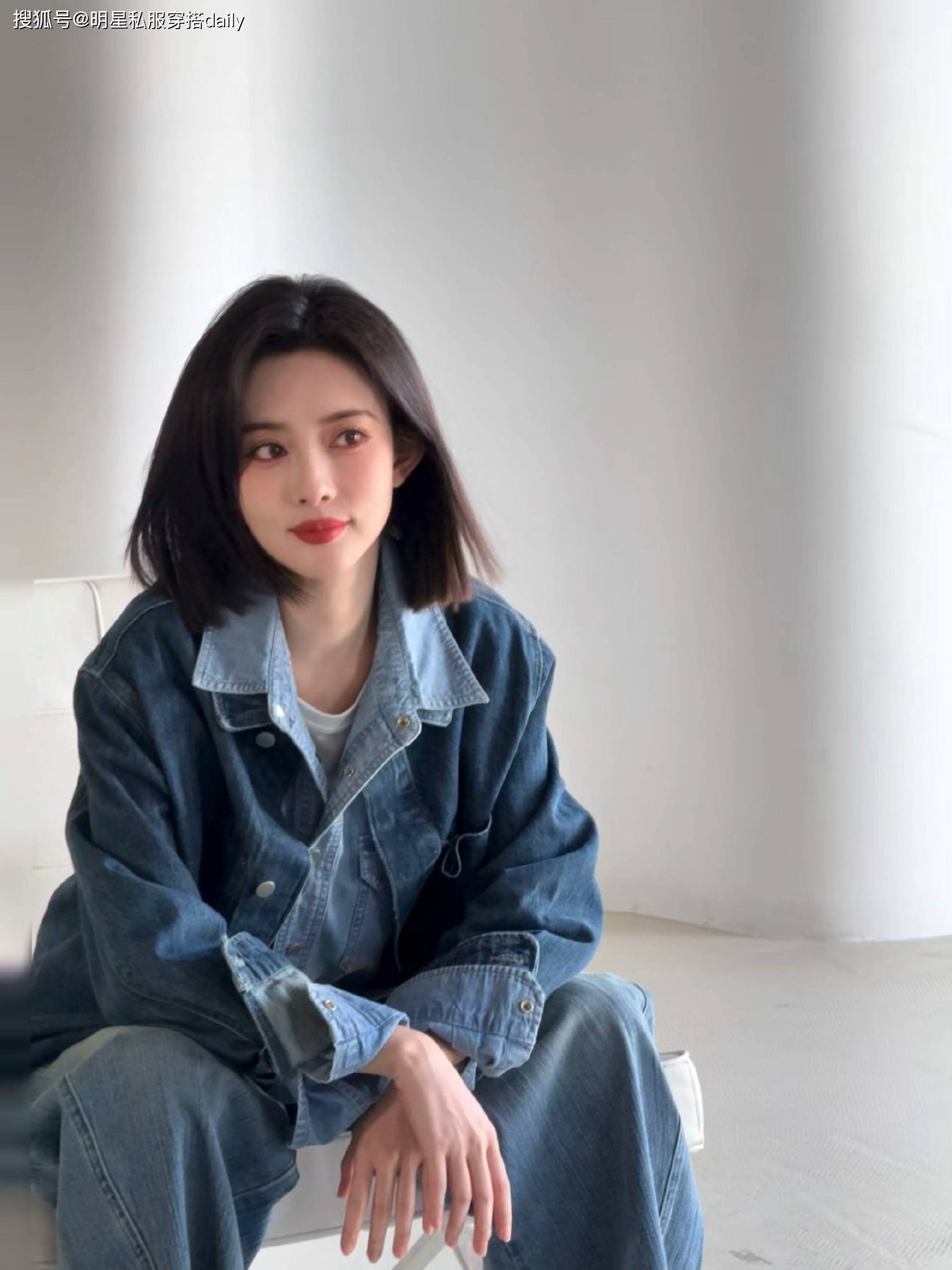 除了酷感十足的机车风,孟子义在休闲风的驾驭上也同样出彩。她会选择一件牛仔外套作主角,搭配同色系的黑色打底衣,呈现出简洁却不乏时尚气息的日常风格。在下装方面,她偏爱与外套同色系的工装风牛仔裤,既有利落感,又兼具舒适与实用。银色运动鞋点亮整套搭配,为整体增添一抹亮色,使造型更具活力。她的中短发造型无论是微卷还是直发,都能很好地诠释出不同的风格魅力。微卷的中短发流露出端庄而成熟的气质,若换成直发,则更显干练和帅气,展现出她多元的时尚表达。